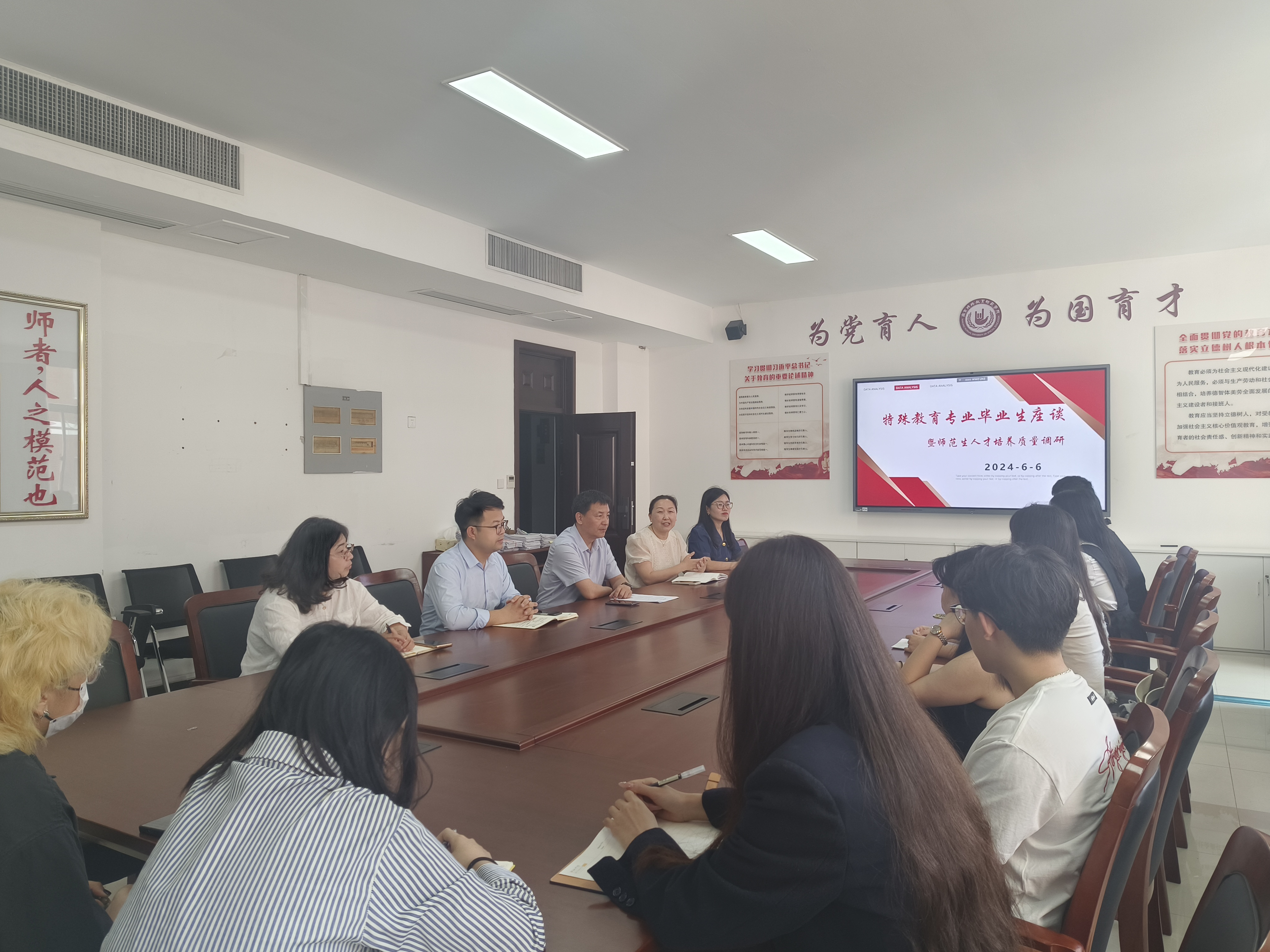 在座谈中,毕业生普遍反映通过大学四年的学习与实践,在专业知识和技能方面掌握了专业的理论、方法和教学策略,强化了特殊教育理念,形成了正确的教育观、特殊儿童观、残疾人观,能够平等对待学生、支持学生发展。有学生表示大学四年最大的收获是确定了人生发展的道路,选择了特殊教育领域作为从事的职业,在见习、实习过程中逐步沉淀自己,使自己产生从量到质的变化。也有学生表示在备考研究生过程中得到学院和老师的很多支持,在备考过程中对特殊教育有了更深入的了解,也坚定了做一名特殊教育教师的决心。
